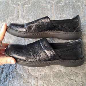 Boc Born Peggy Slip-On Clogs WOMENS Size 7.5M Black FLORAL Embossed COMFY Shoes