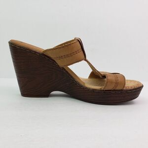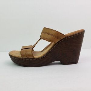 Boc Born Womens Size 9 Tan Slip On Open Toe Wedge Sandals Shoe