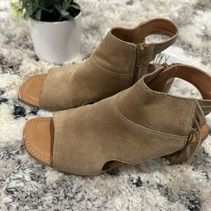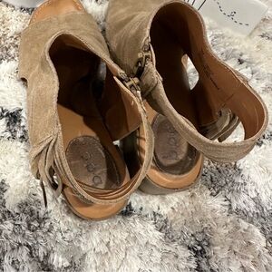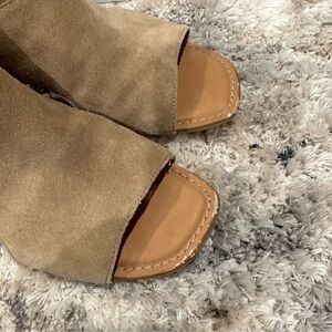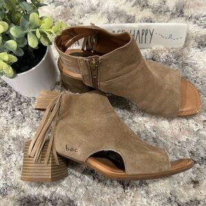 B.o.c Verona Tan Suede Peep Toe Block Sandals with Tassels