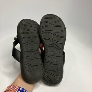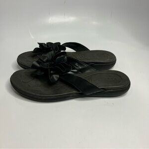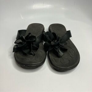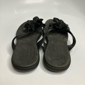 Boc black leather flip flops with leather flower detail size 7