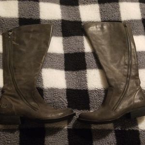 These are beautiful natural leather boc boots. There are some scratches on the left boot but it's part of it being the natural leather and can be buffed out. The calf width is about 16".