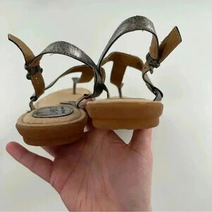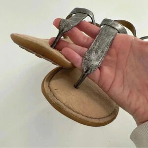 Boc born concepts womens sandals size 8 39 pewter metallic faux leather vegan t-straps