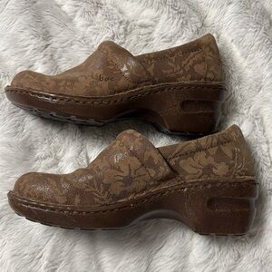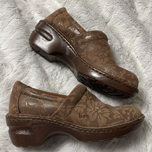 Leather clogs with a cute floral design. These are preloved in like new condition. These are super comfy! If you’ve been considering trying b.o.c’s these are a great start.