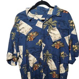 Boca Classics Hawaiian Shirt Mens XLT Short Sleeve Button Up Blue Tropical Print No Stains Or Damage