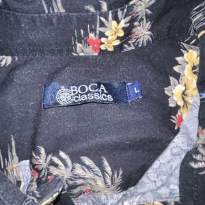 Made by a trusted brand, Boca Classics, this shirt is a true gem for those who appreciate fashion. The black color and Hawaiian theme add a touch of class and style to any outfit. Don't miss out on the chance to own this incredible shirt that is sure to turn heads.