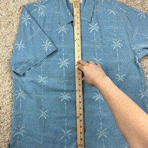Boca Classics Island Wear Size Large Blue All Silk Button Up Shirt Palm Trees