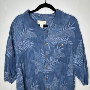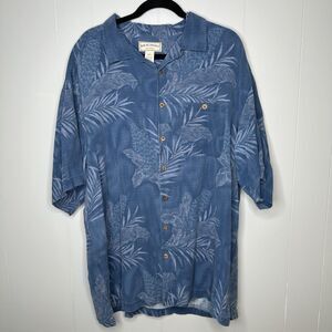 Boca Classics Mens Shirt Island Wear Silk Hawaiian Short Sleeve Blue Leafy XXXL