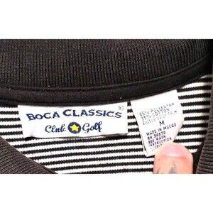 Boca Classics Polo Shirt Mens Medium Black Striped Golf Casual Short Sleeve