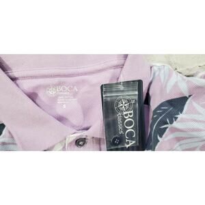 Boca Classics Purple Floral Cotton Knit Collared Golf Polo Shirt MENS SIZE SMALL
