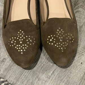 Bocage brown suede Loafers with Gold studded toe design size 39 or US 8 1/2