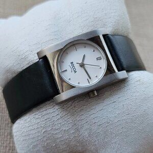 Boccia Titanium Women Watch Swiss Quartz Black Genuine Leather Band Analog Watch