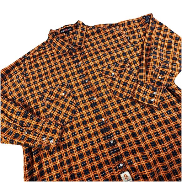 Bocomal FR Pearl Snap Shirt Men 4XL Plaid Orange Cat 2 Flame Resistant Workwear