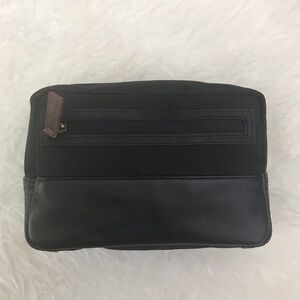 Zip around top closure - Exterior features ballistic poly construction with faux leather trim, front zip pocket - Interior features 1 wall zip pocket, 1 mesh slip pocket - Approx. 6.5" H x 10" W x 4.5" D