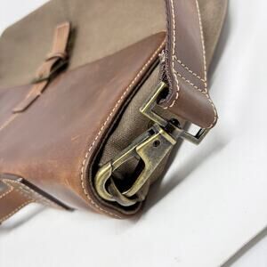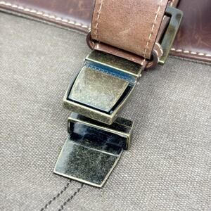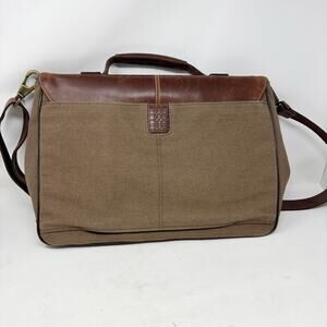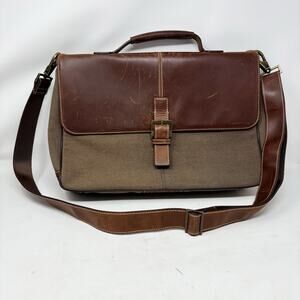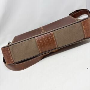 Boconi Messenger Lap Top Bag Flap Front Canvas and Leather Brass Hardware