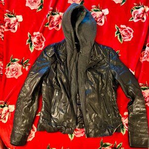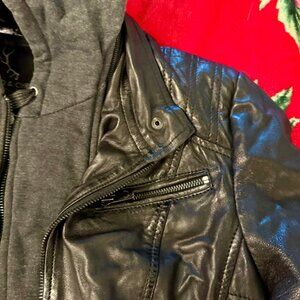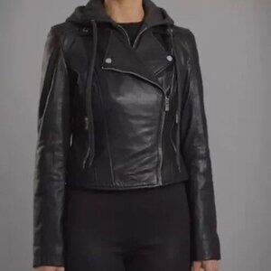 Bod & Christensen Amber Black Leather Moto Jacket w/ Removable Hoodie MSRP $590