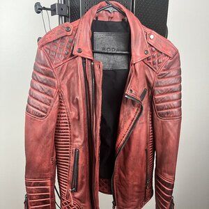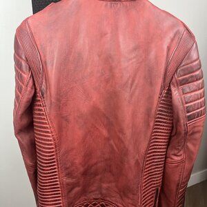 Brand new jacket! Worn once. I have the same style in black & decided I wanted the Burnt Red in a different style to mix things up. Asa a result, I have a brand new jacket that I no longer need, because who needs two Burnt Red leathers? Not this guy =)