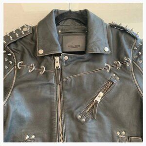 Boda Skins Studded Spike Black Leather Jacket for Miracle Workers TBS - sz XL