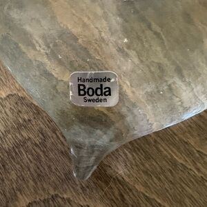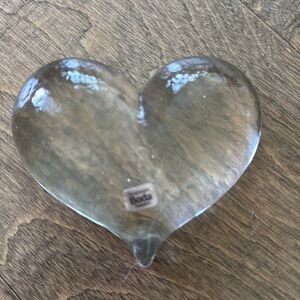 Boda Sweden Vintage Heart Paperweight Swedish Handmade Scandinavian Art Glass in excellent used condition. No chips or cracks. Has just been sitting in a china cabinet waiting for a new home 🤍 Gorgeous clear glass heart paperweight with some slight texture in the surface. Vintage item made by Swedish Glass manufacturer Boda (prior to their merger with Kosta Boda). Includes the original foil sticker. Swedish art glass is luminous and clear and a special way to brighten someone's day 🤍 Measurements: 4 1/2" long x 3 1/2" wide x 1 1/2" tall. No box but will ship with care 🤍