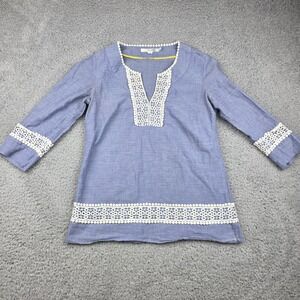 Keywords: Bodden, Tunic Top, Blue Top, Lace Trim, Womens Top, Cotton Blend, Casual Top, Boho, Bohemian, Beach Top, Summer Top, Petite, Festival