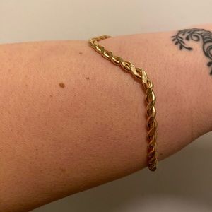 @flowermilkmoon there is not. I was told at the Bode store that it was 14k recycled, so a mix of white, rose and yellow gold. Emily Bode wears this same bracelet everyday 🥰
