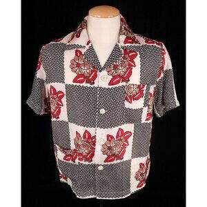 Bode Checker Bloom Floral Silk Bowling Shirt S/M Mens New
