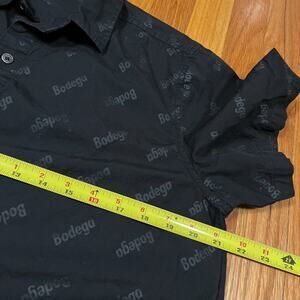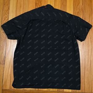 Bodeda Short Sleeve AOP Spellout Logo Button Up Shirt Black Size Medium
