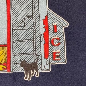 Features a colorful storefront design with black cats lounging throughout a bodega scene—complete with ice chest, ATM, lotto signs, and more. Great gift for cat lovers or fans of NYC-style streetwear.