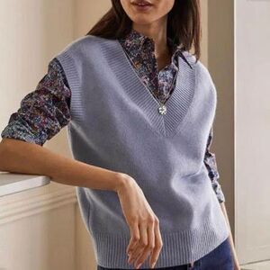 Boden 100% Cashmere Relaxed Sweater Vest V Neck Knit Pullover