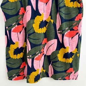 oden 100% Cotton Floral Printed Costal Midi Jersey Dress Size. Pullover style. Cap sleeve. Side pockets. Midi length. Beautiful sunflower pattern. Boat neckline.