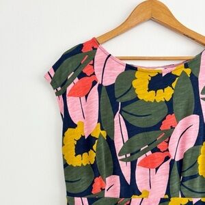 Boden 100% Cotton Floral Printed Short Sleeve Costal Midi Jersey Dress Size 12R