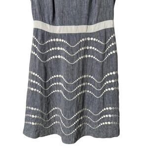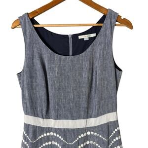 Boden 100% Linen Chambray Embroidered Fit & Flare Sun Dress Sleeveless, Size 8