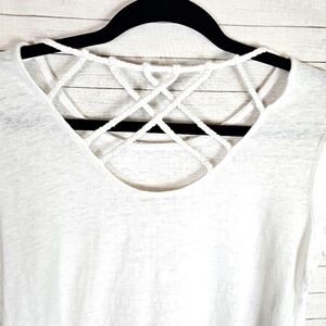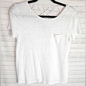 Boden 100% Linen Corded Cutout White Short Sleeve Top with Pocket