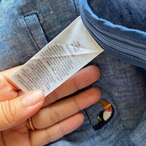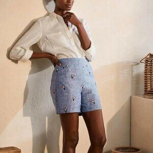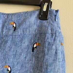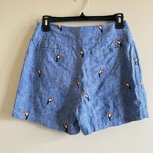 Boden 100% Linen Hornsea Linen Shorts Chambray with Toucans Womens Size 2 Blue