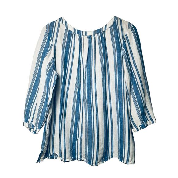 Boden 100% Linen Striped 3/4 Sleeve Tunic Blouse Sz 14 Button Back Nautical Boho