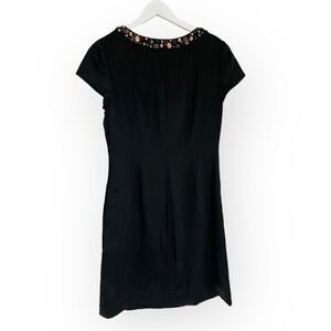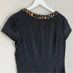 Boden women’s 100% silk short sleeve jeweled/beaded neckline shift dress in black. Size 8 regular.