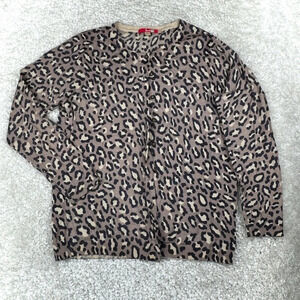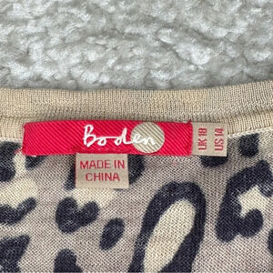 Boden 100% Wool Cardigan Sweater, Leopard Animal Print, Size 14, FLAW