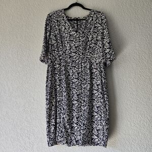 Boden 12R Ines Dress Navy blue and White Leaf Print Mini Dress