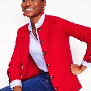 Boden 14 Red Textured Stitch Wool Blend Button Front Cardigan Sweater Coat