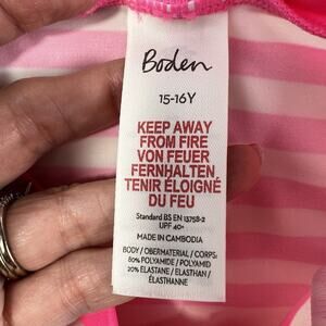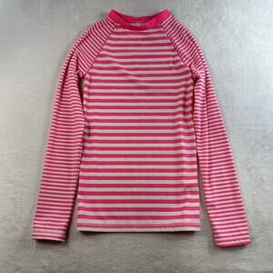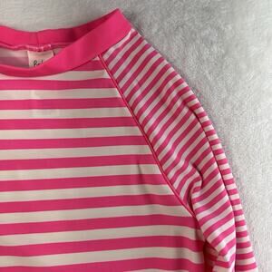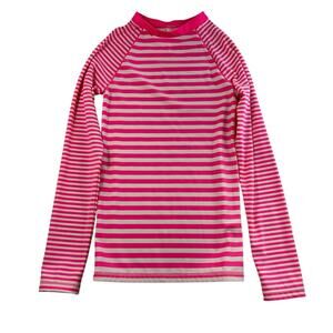 Boden 15 16 Youth Rash Guard Long Sleeve Swim Top Pink White Striped UPF 40+