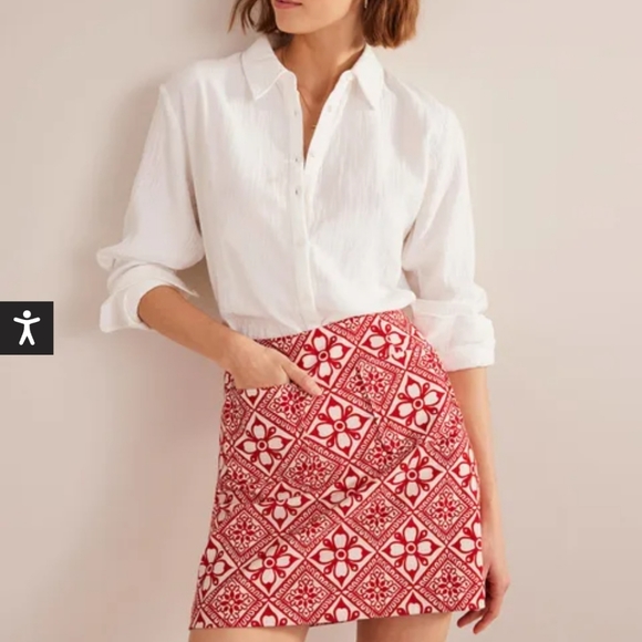 Give everyday looks a subtle 60s feel with this printed mini skirt. It's made from cotton to a subtle A-line silhouette and is adorned with two patch pockets.
