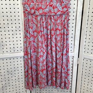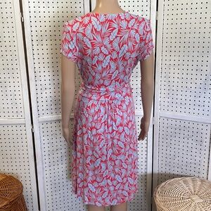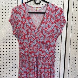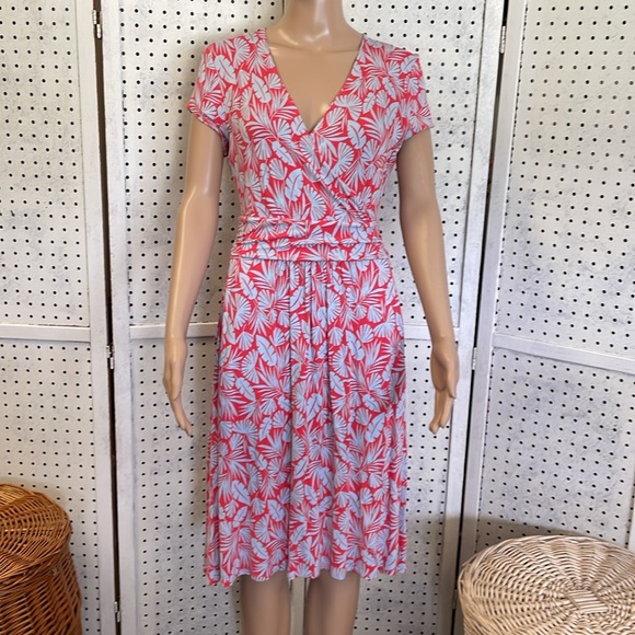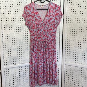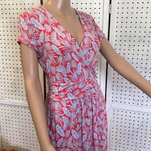 Lola Red and blue palm leaf print jersey knit midi with faux wrap top and front pockets❤️💙❤️💙 chest 17 length 40