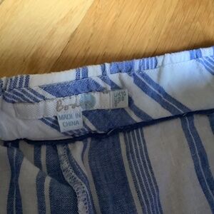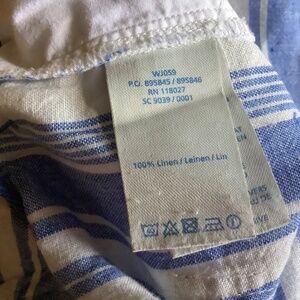 This shorts are in great condition.8” inseam. Waist is 32 in. Fabric is 100% Linen. Come from pet free, smoke free home.