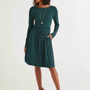 Boden Abigail Green Polka Dot Jersey Knit Long Sleeve Dress, Size 14R
