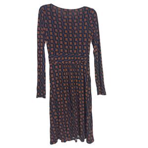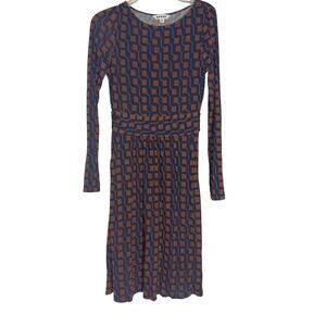Boden Abigail Long Sleeve Cognac/Navy Geometric print Dress Size 4 R