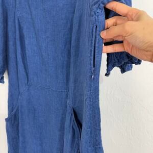 Boden Addylin Shift Dress 16 Long Blue 100% Linen Chambray Gauze *Read