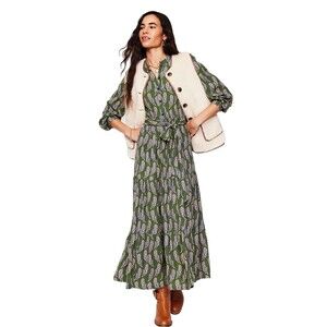 Boden Alba Womens Green Maxi Dress 10 R Viscose Tiger Chive Long Frill Sleeve
