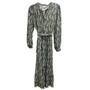 Boden Alba Womens Green Maxi Dress 10 R Viscose Paisley Belted Long Frill Sleeve