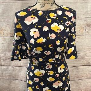 Boden “Alexis” Floral Dress Fluted Sleeves Button Detail Navy Size 6 Lined
