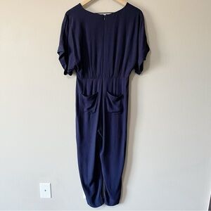 Boden Alice Faux Wrap Front Jumpsuit Short Sleeves Navy Blue Size 4 Petite NEW