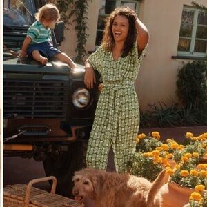 Boden Alice Wrap Jumpsuit Green and White Pineapple Print Size 10T